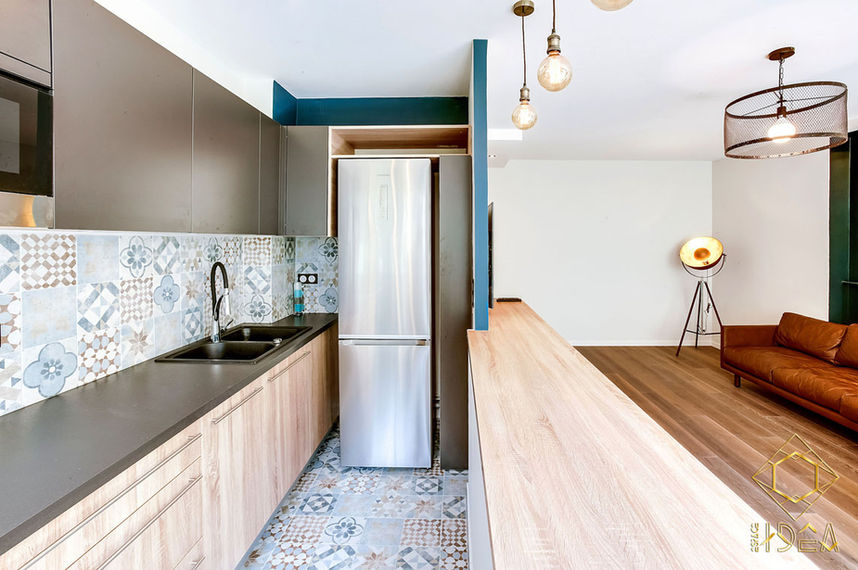 Notre mezzanine est devenu un espace de travail avec un bureau sur mesure et notre salon est redevenu la pièce centrale de notre appartement, avec une TV camouflée et une jolie décoration ! Ce projet a été un challenge aussi bien pour nous que pour l'équipe Espace Idea et l'artisan (Saïd) et son équipe, très pro et méticuleux pendant toute la durée des travaux, et aussi Carlos qui a monté les meubles et relevé le défi du montage des tasseaux de 4m de haut ! Nous sommes très heureux dans notre "nouvel" appartement qui est à présent parfait à nos yeux !